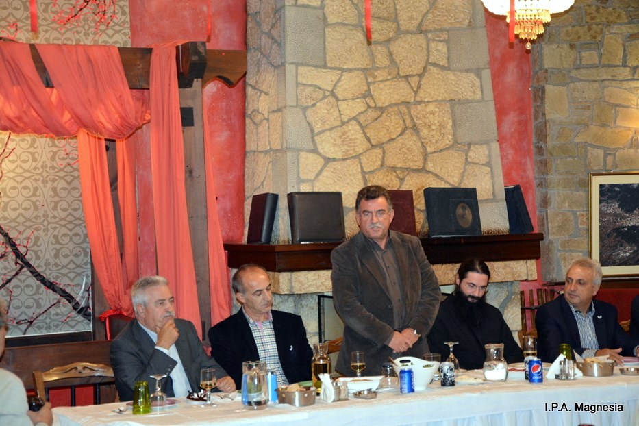 Μετά το πέρας των εργασιών της συνάντησής μας, στις 21.00 ώρα περίπου, έλαβε χώρα δείπνο όλων των συμμετεχόντων, στο εστιατόριο «ΚΟΖΙΑΚΑΣ» του κ. Καλαμαρά Στεφάνου. Στο δείπνο παραβρέθηκαν και τίμησαν με την παρουσία τους : O Θεματικός Αντιπεριφερειάρχης Αγροτικής Ανάπτυξης και Αντιπροέδρος του Γ.Ν.Τρικάλων κ. ΝΤΙΝΟΣ Μπάρδα, ο Αναπληρωτής Δημάρχου Πύλης και Αντιδήμαρχος Οικονομικών κ. ΚΡΟΥΠΗΣ Κων/νος, ο Διευθυντής της Διεύθυνσης Αστυνομίας Τρικάλων κ. ΓΡΑΒΑΝΗΣ Αθανάσιος, ο Αντιδήμαρχος Πολιτισμού και Αγροτικής Ανάπτυξης του Δήμου Πύλης κ. ΚΑΤΣΙΒΕΛΟΣ Βύρων και τέλος ο Αντιδήμαρχος Τουρισμού και Παιδείας του Δήμου Πύλης κ. ΚΑΛΑΜΑΡΑΣ Στέφανος, ο οποίος τυγχάνει και ιδιοκτήτης του ξενοδοχείου «ΚΟΖΙΑΚΑΣ», όπου πραγματοποιήθηκε η 4η Πανθεσσαλική συνάντησή μας. Ο Προέδρος της Τοπικής μας κ. ΘΕΟΧΑΡΗΣ Κων/νος, υποδέχθηκε τους ανωτέρω Επισήμους και αναφέρθηκε εν ολίγης στους σκοπούς και τις επιδιώξεις της Ένωσης, όπως για παράδειγμα την δημιουργία σχέσεων φιλίας, ανάπτυξης πνεύματος, αλληλεγγύης και αμοιβαίας εξυπηρέτησης και βοήθειας μεταξύ των αστυνομικών και των οικογενειών τους.