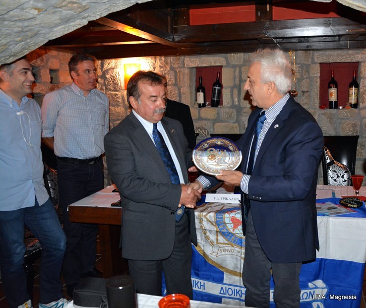 Επίσης τόνισε ότι σαν νέο Δ.Σ. θα προσπαθήσουμε να αναδείξουμε τα ιστορικά μέρη του Ν. Τρικάλων, και ανήγγειλε ότι η 12η Φιλική Συνάντηση Τοπικών Διοικήσεων της Διεθνούς Ένωσης Αστυνομικών το έτος 2016, θα πραγματοποιηθεί στην Καλαμπάκα, ζητώντας την στήριξη όλων των Φορέων. Ακολούθησε χαιρετισμός από όλους τους Επισήμους και κατόπιν ευλόγησε τον δείπνο ο Πρεσβύτερος Πατέρας Νικόλαος ΔΑΛΑΓΙΩΡΓΟΣ, συνεργάτης της Θρησκευτικής Υπηρεσίας Ελληνικής Αστυνομίας και Αστυνομικός, ο οποίος αναφέρθηκε στον Προστάτη των Εθνών και της Διεθνούς Ένωσης Αστυνομικών Απόστολο Παύλο και στην «κοινωνία προσώπων» που δημιουργούν οι δεσμοί των μελών της Διεθνούς Ένωσης μας.