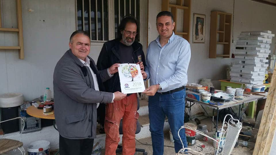 Ο πρόεδρος της ΙΡΑ Σάμου Γιώργος Αβραμίδης συνόδευσε τον πρόεδρο της ΙΡΑ Καρδίτσας Ζαρχανή Γεώργιο στο εργαστήριο της σύγχρονης κεραμικής τέχνης Υδρία στη Σάμο στη φωτογραφία διακρίνονται οι δυο πρόεδροι οι οποίοι προσφέρουν το ημερολόγιο της ΙΡΑ στον κ. Τίμο Χατζηλαγό.