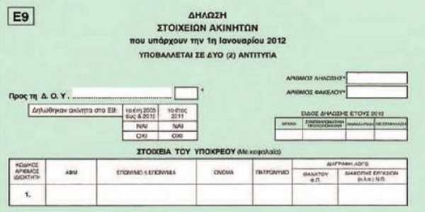 (λήγει στις 15 Σεπτεμβρίου) έως τις 20 Σεπτεμβρίου, για όσους είχαν μεταβολή το 2012 στην ακίνητη περιουσία τους (πίνακας 1 του Ε9 2013). Ενώ, η επικαιροποίηση των αγροτεμαχίων (πίνακας 2 του Ε9 2013) θα μετατεθεί χρονικά έως τις 15 ή τις 30 Νοεμβρίου.