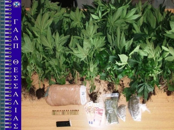 Κατασχέθηκαν, μεταξύ άλλων, τριάντα εννέα (39) δενδρύλλια ύψους έως (90) εκατοστά, πάνω από μισό κιλό κάνναβης κατανεμειμένο σε τέσσερις συσκευασίες, φυσίγγια πυροβόλου όπλου κ.α.