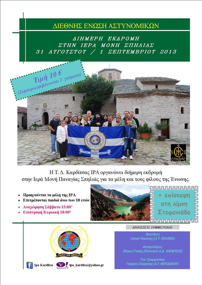 Παρακαλούνται όσοι επιθυμούν να λάβουν μέρος στην εκδρομή μας να δηλώσουν τη συμμετοχή τους το συντομότερο δυνατό. Υπενθυμίζουμε ότι μπορούν να έρθουν μαζί μας και μη αστυνομικοί, φίλοι της ένωσης μας!